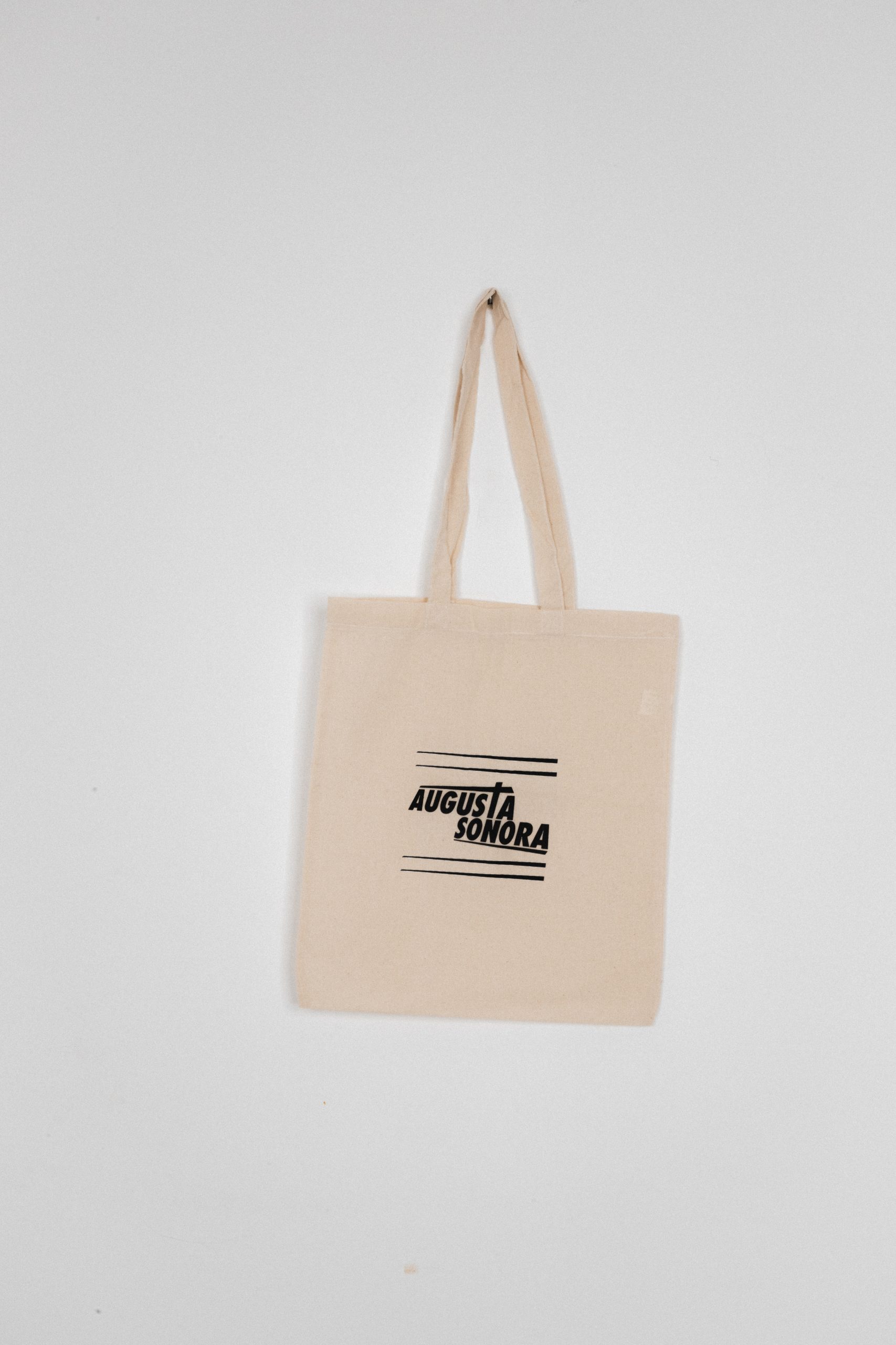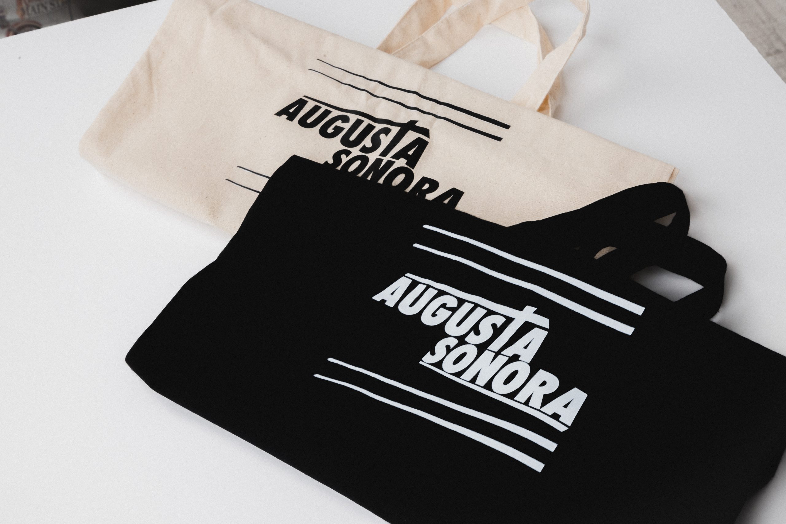 Totebag oficial de Augusta Sonora disponible en dos colores: en crudo y en negro.